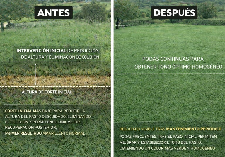 Corte y mantenimiento de césped para mantener el prado limpio, nivelado, saludable y con excelente presentación.