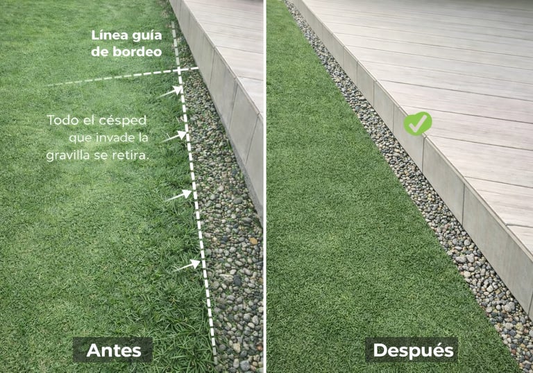 Bordeo de zonas duras y jardines para definir contornos, eliminar exceso de césped y lograr acabados limpios y precisos.